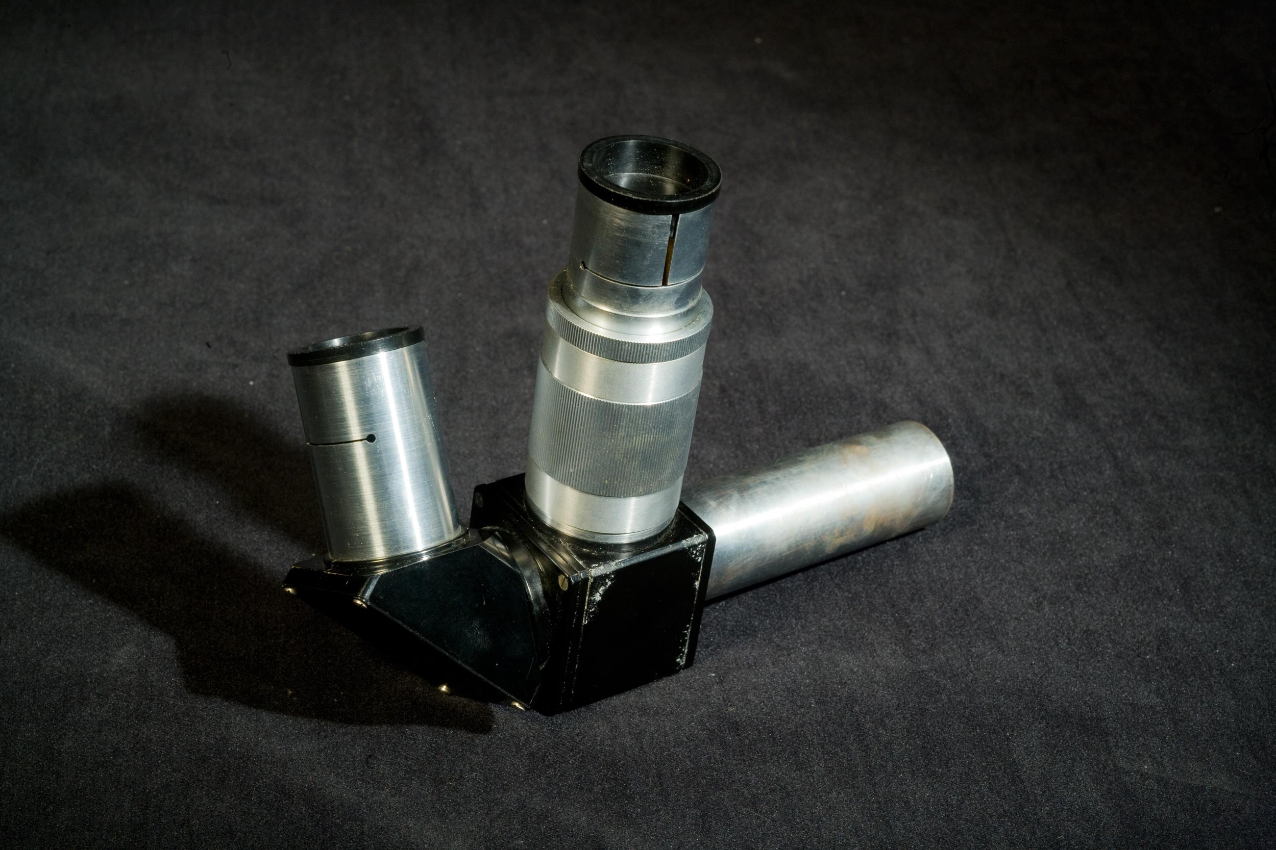 This second set of photos is of a 1950’s unbranded version of the Duetron Model B. This is the larger Duetron for two 1.25” eyepieces. It has a chrome finish and includes a blue filter for the second observer.
